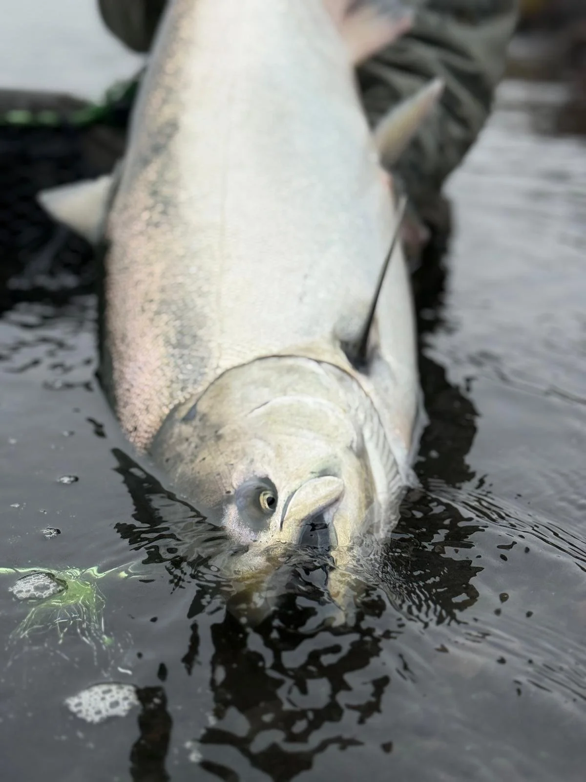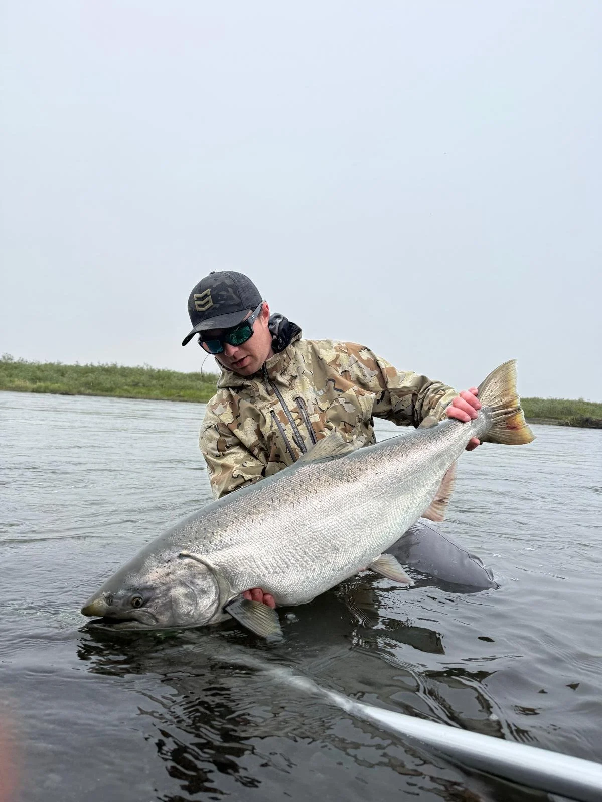 Enjoy Alaska’s premier Chinook (King) fishing on the Sandy River. Chrome-bright fish, just a short distance from saltwater, are super-abundant in June and July. You can fish over un-pressured Kings that take swung flies aggressively. The experts are calling the Sandy River one of the last great Chinook fisheries left in the world.